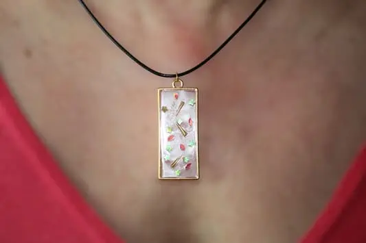 Chaque pendentif en résine est une pièce unique, où les couleurs dansent et se figent dans la transparence pour créer un bijou à la fois délicat et singulier.